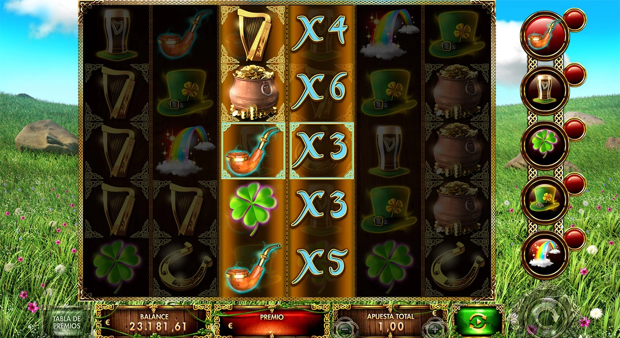 Entre las praderas más verdes de Irlanda un travieso duendecillo se pasea con su sombrero, su pipa y su cerveza negra repartiendo suerte allí por donde pasa. Atención al Arco Iris....¡hará multiplicar tus ganancias!