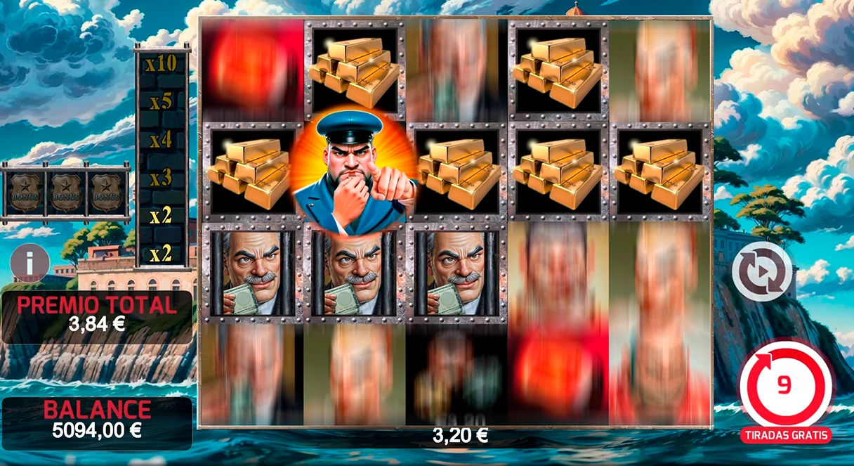 ¡Prepárate para la gran fuga en Beating Alcatraz! Cada tirada te acerca más a la libertad gracias a los Sticky Wins, que fijan las combinaciones ganadoras y activan Respins. Avanza en el panel de multiplicadores y aumenta tus premios hasta x10. Encuentra 3 símbolos BONUS para abrir la puerta a las tiradas gratis, donde un Wild fijo en el segundo carrete te ayudará a burlar la seguridad. ¿Lograrás dejar atrás los muros de Alcatraz?