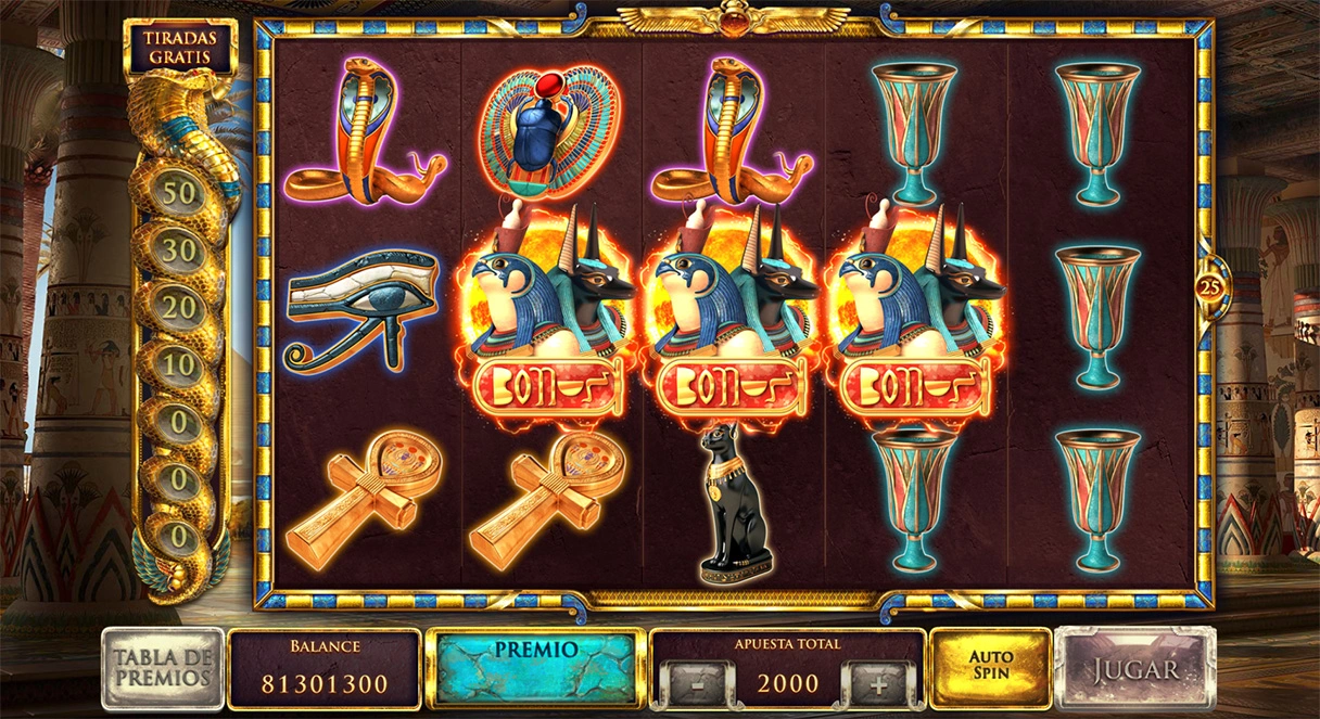 Egipto y sus misterios, Cleopatra, su gran reina, y el magnífico 'Áspid de oro' con el que podrás ganar hasta 1.000 tiradas gratis.