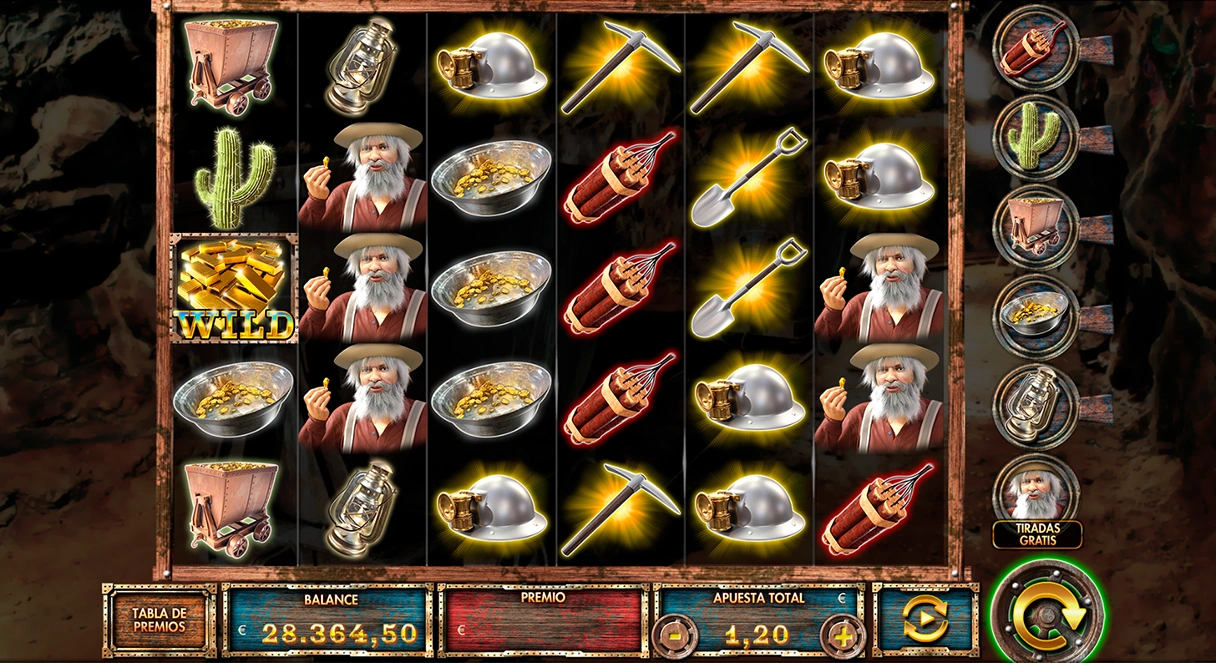Una mina repleta de oro y muchas posibilidades de conseguirlo gracias a las 6 increíbles mecánicas que ofrece esta video slot de 6x5 rodillos. Y mucha atención al minero en la fase de tiradas gratis....¡multiplicará tus ganancias!
