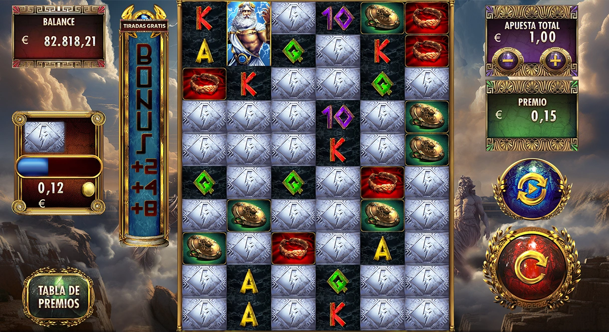 Zeus vuelve en esta video slot con 1 millón de modos de premio con un nuevo giro, los símbolos premian desde ambos lados y además todos los símbolos que participan en un premio desaparecen junto con los demás del mismo tipo aunque no formen parte del mismo. ¡Bienvenido de nuevo al Olimpo!
