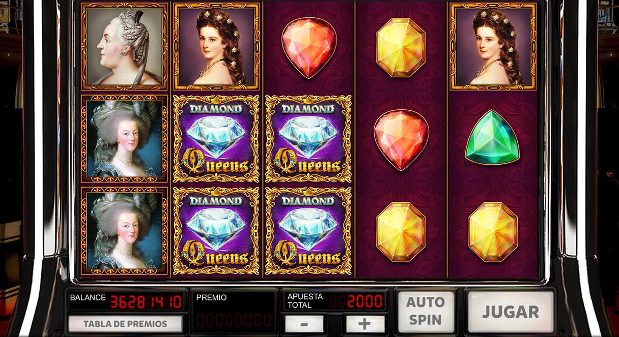 - 'Reinas y Diamantes' es una videoslot de 20 lineas y 5 carretes con la funcionalidad 'Cascading Reels', además de contar con símbolos Wild y Scatter.