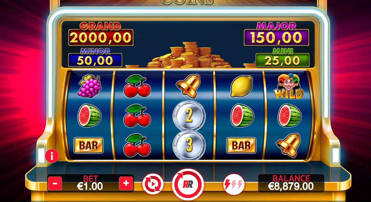Experience the action in MEGA COINS! Activate the BONUS GAME, collect rewards with the COLLECT symbol, and boost your wins. Fill all positions to claim the GRAND prize and take advantage of the MEGA TREASURE: any BONUS or COLLECT symbol can open the door to special prizes.