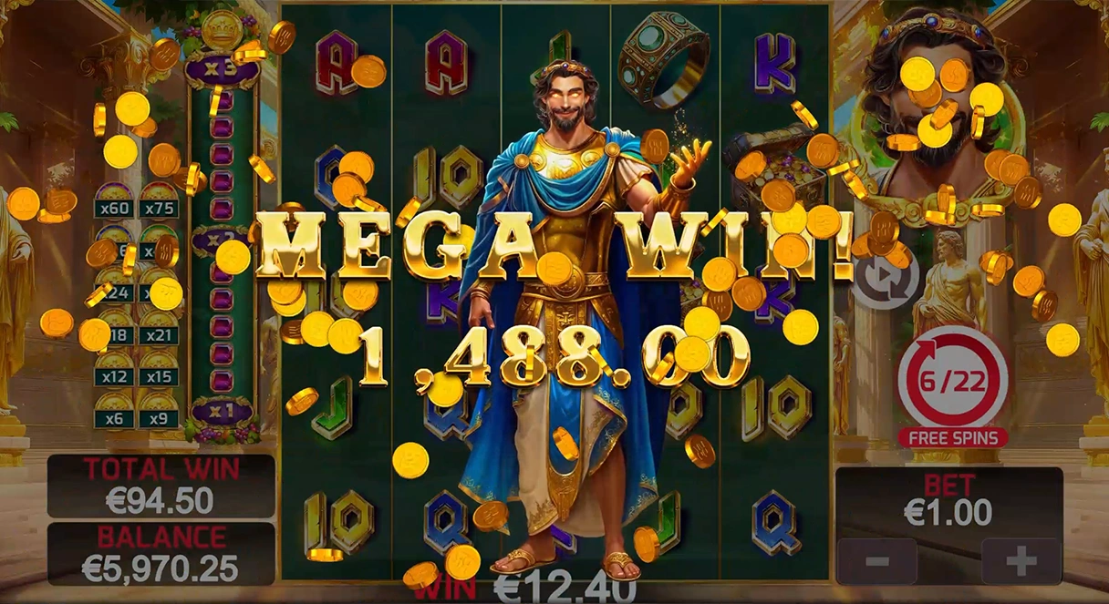 The legendary King Midas will happily sit on his throne, admiring his riches in the process. He has the power to transform whatever he touches into gold, helping you turn spins into wins.